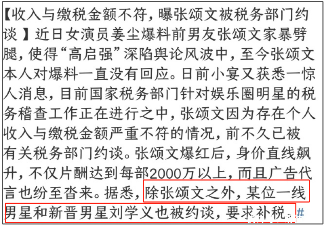 ——狗仔爆料张颂文和刘学义波及税务问题,还提到了一位文娱圈一线明星,也一说念被约谈了;